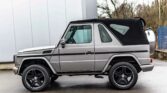 In the model 320 CDI a V6 turbo engine works, which generates 224 HP from 3.0 liters of displacement – the power transmission takes place over an automatic transmission. Under the interior of the G 320 CDI, which is held in black on the whole, wood applications at doors, center console and dashboard provide for accents. In addition to the full leather seats, the following features are also worth mentioning regarding the equipment of this Mercedes-Benz G model: Sunroof,power seats with memory, heated seats, power windows, air conditioning, cruise control and the original display radio. In addition, the original tarpaulin and a hardtop are also available for the car. Pneus of the mark Dunlop – which show approximately 70-90% of their new condition – show up on 5-spoke AMG rims. We certifiy a condition of 70-90% to the brake system, in the range of the chassis no modifications deviating from the original condition.
